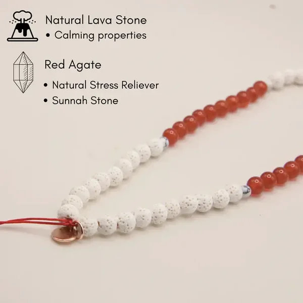 Verleihe deinem Handy einen Hauch von Eleganz mit unserem Tasbeeh-/Charm-Accessoire! Gefertigt aus natürlichem Lava- und rotem Achat (Aqeeq), vereint dieses einzigartige Schmuckstück stilvolle Ästhetik mit beruhigenden Eigenschaften – perfekt für Momente der Ruhe und Besinnung. Aqeeq war bereits zu Lebzeiten unseres geliebten Propheten ﷺ bekannt und geschätzt. Ein besonderes Accessoire mit spiritueller Bedeutung und zeitloser Schönheit. ✨
