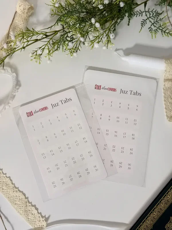 Unsere selbstklebenden Qurʾān-Juzʾ-Tabs wurden entwickelt, um dein Lesen, Auswendiglernen und Wiederholen des Qurʾān übersichtlich und mühelos zu gestalten.